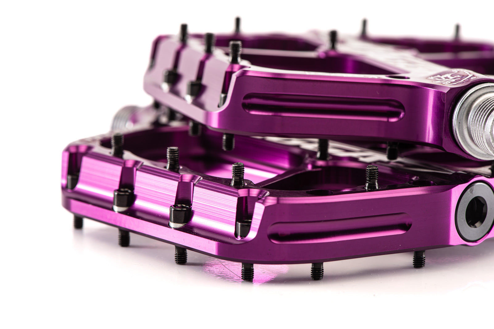 Nuestro sistema de pasadores se ajusta en altura mediante las arandelas incluidas. Se pueden reemplazar fácilmente desde el otro lado del cuerpo del pedal, incluso si están dañados.